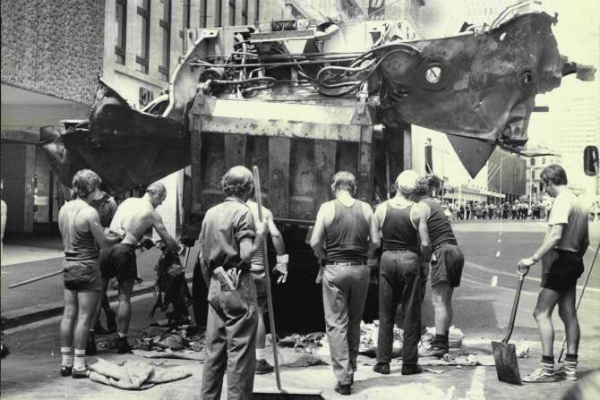 Tras la guerra, Alemania y Austria eran un erial lleno de cascotes y edificios derruidos. Los ejércitos aliados (Gran Bretaña, EEUU, Unión Soviética, Francia…) habían bombardeado y destruido pueblos y ciudades enteras, donde solamente quedó hambre, miseria, cascajos y desechos al por mayor. La reconstrucción iba a ser difícil, una monumental tarea. En ese contexto surgen las Trümmerfrauen, esto es, las llamadas “mujeres de los escombros”. Ante la falta de mano de obra masculina y la desconfianza instaurada, se recurrió a las mujeres locales, civiles, para asear la zona y recuperar materiales. Reclutadas a partir de los 15 años de edad, las Trümmerfrauen despejaron sitios, picaron, cavaron, lustraron, cargaron piedras, rescataron ladrillos y, en suma, pusieron orden al destrozo durante la primera posguerra, con frío y con calor…y manualmente, sobre todo. Muchas de ellas fueron torturadas, vejadas, golpeadas y violadas por sus nuevos libertadores. Nadie castigó esos abusos y crímenes. Nadie les paró los pies.